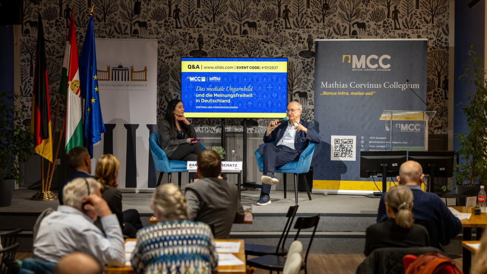 Am Abend des 4. März 2026 fand im Scruton Café in Budapest eine Veranstaltung samt Podiumsdiskussion mit Roland Schatz, Herausgeber des Freiheitsindex und international anerkannter Medienanalyst, statt. Die Veranstaltung, an der rund 40 Personen teilnahmen, wurde von Dr. Bence Bauer, Direktor des Deutsch-Ungarischen Instituts für Europäische Zusammenarbeit, eröffnet und von Antonia Baraniuk, Visiting Fellow am Deutsch-Ungarischen Institut für Europäische Zusammenarbeit, moderiert.